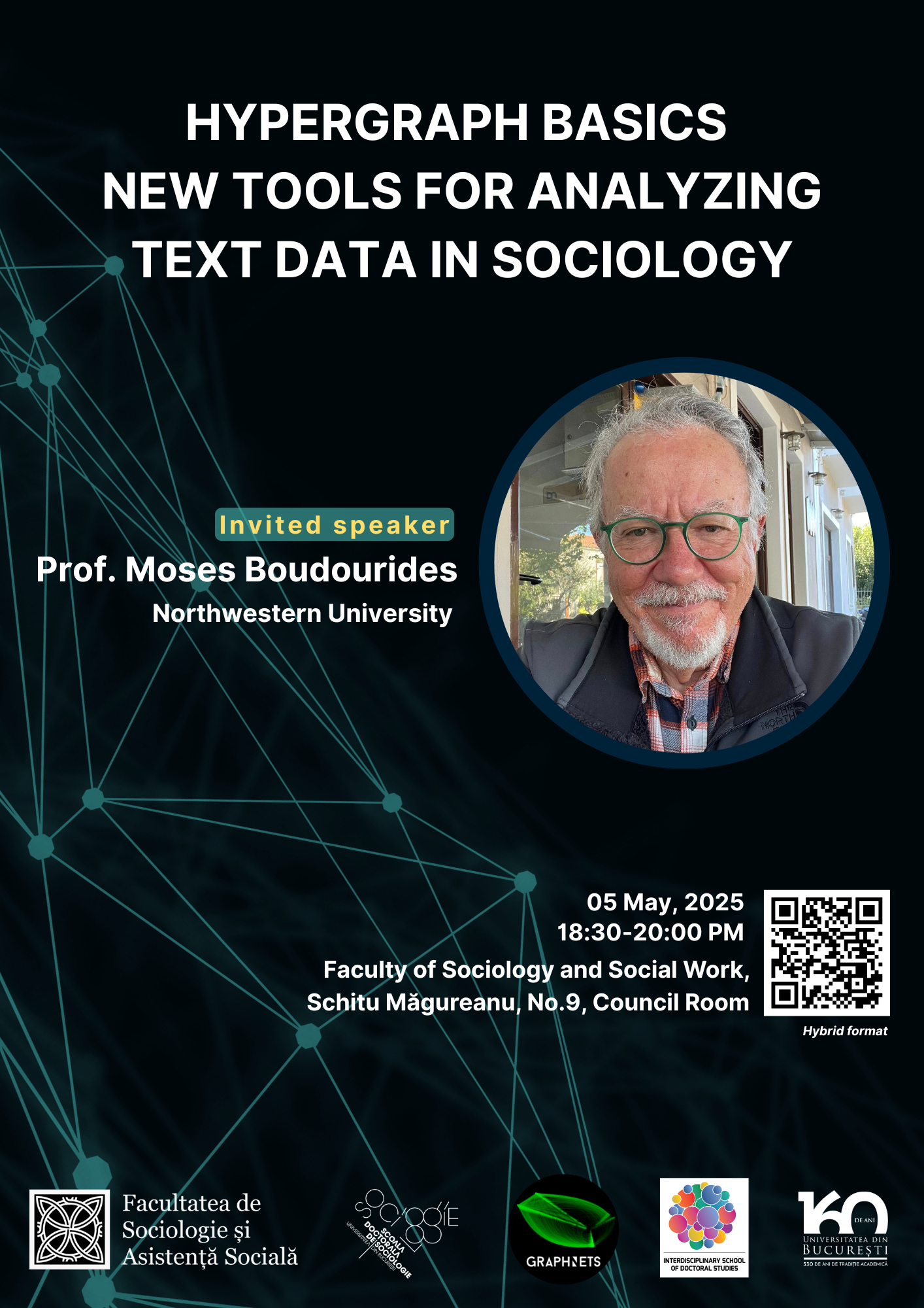 The University of Bucharest is happy to organize the workshop Hypergraph basics. New tools for analyzing text data in sociology. The workshop is given by Prof. Moses Boudourides, an expert in social network analysis and digital methods. Using real examples, he’ll show how computational tools can reveal hidden patterns in communication and knowledge production. Whether you’re into sociology, data science, or digital media, this event will offer fresh insights and practical ideas